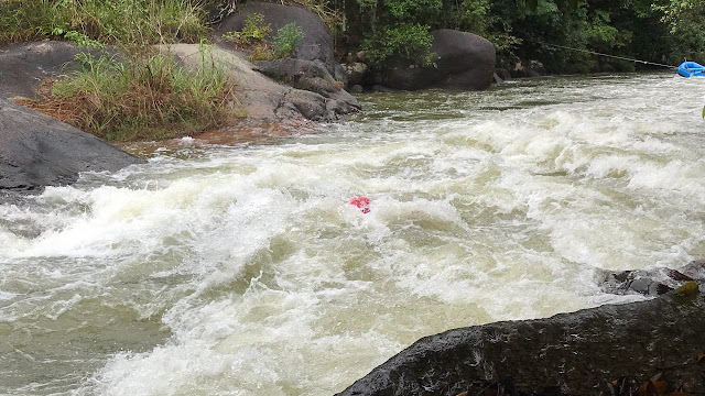 sebelum menempuh jeram-jeram yang mencabar kiter kena buat self water confident dulu, masa ni dah tak boleh nak senyum sebab takut tapi yang ambil gambar ni suruh senyum gak